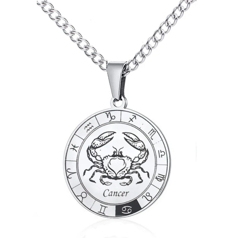 Stainless Steel 12 Zodiac Sign Necklace For Men Women Constellation Jewelry Birthday Gifts